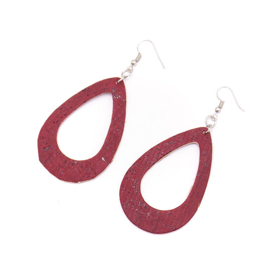 Wine Red Natural Cork Teardrop Hoop Earrings