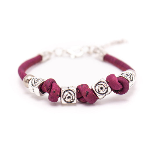 Knotted Rose Natural Cork Bracelet - Various Colours