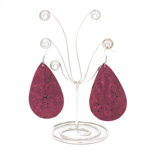 Wine Red Natural Cork Teardrop Earrings